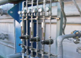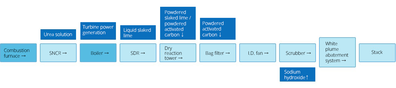- Environmental pollutant concentrations in air, water, etc. are continuously measured by automatic analyzers and connected online to the main computer at the control center, where items such as dust, SOx, NOx, CO, HCl, oxygen, flow rate, and temperature are measured and data are collected at 5-minute and 30-minute intervals.