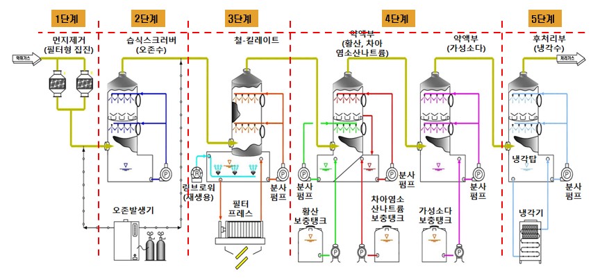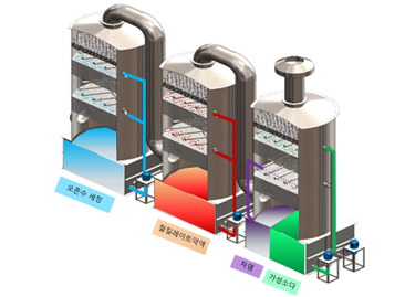 • 3단계에서 미처리된 악취를 약액세정으로 최종 처리함.