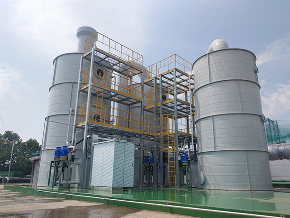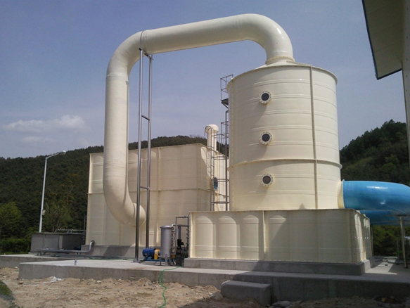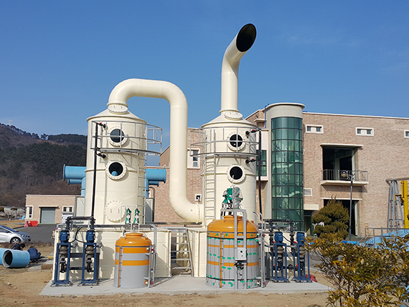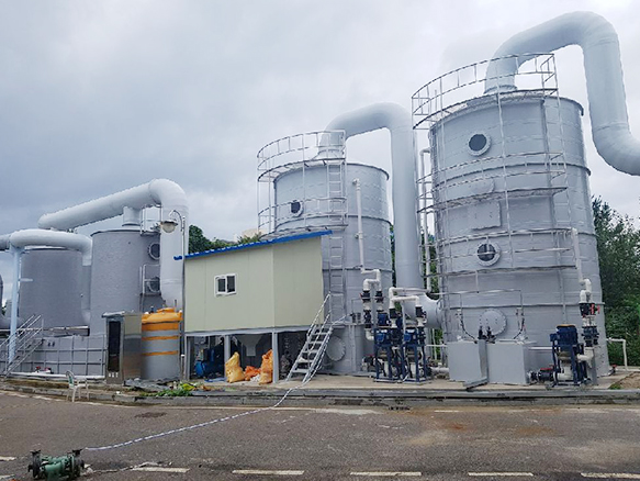 고농도 악취제거 - 고농도 악취기준 : 복합악취 5,000배 이상, 탈취풍량 : 500 CMM 기준, 황화수소 유입 : 50ppm기준