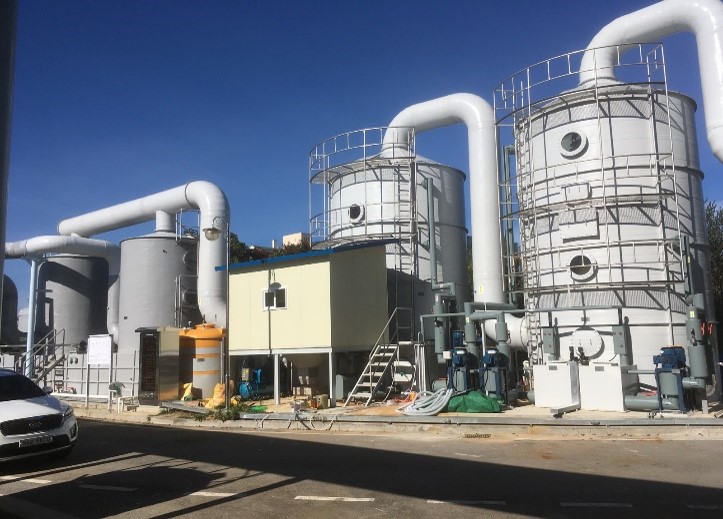 기존 생물반응조 포기용 공기 및 바이오필터로 악취를 처리하였으나 고농도 악취물질을 처리하지 못하고 성능 기준을 초과하여 당사 공법 적용 후 성능 기준 만족
