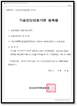 등록번호 – 영산강유역환경청 1호 (등록일 : 2020년 10월 05일)