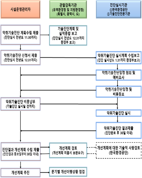 ☉ 기술진단 신청자는 「공공환경시설 악취기술진단 업무처리규정 제6조(기술진단 신청)」에 따라 기술진단 실시기관에 신청서를 제출하여야 한다.